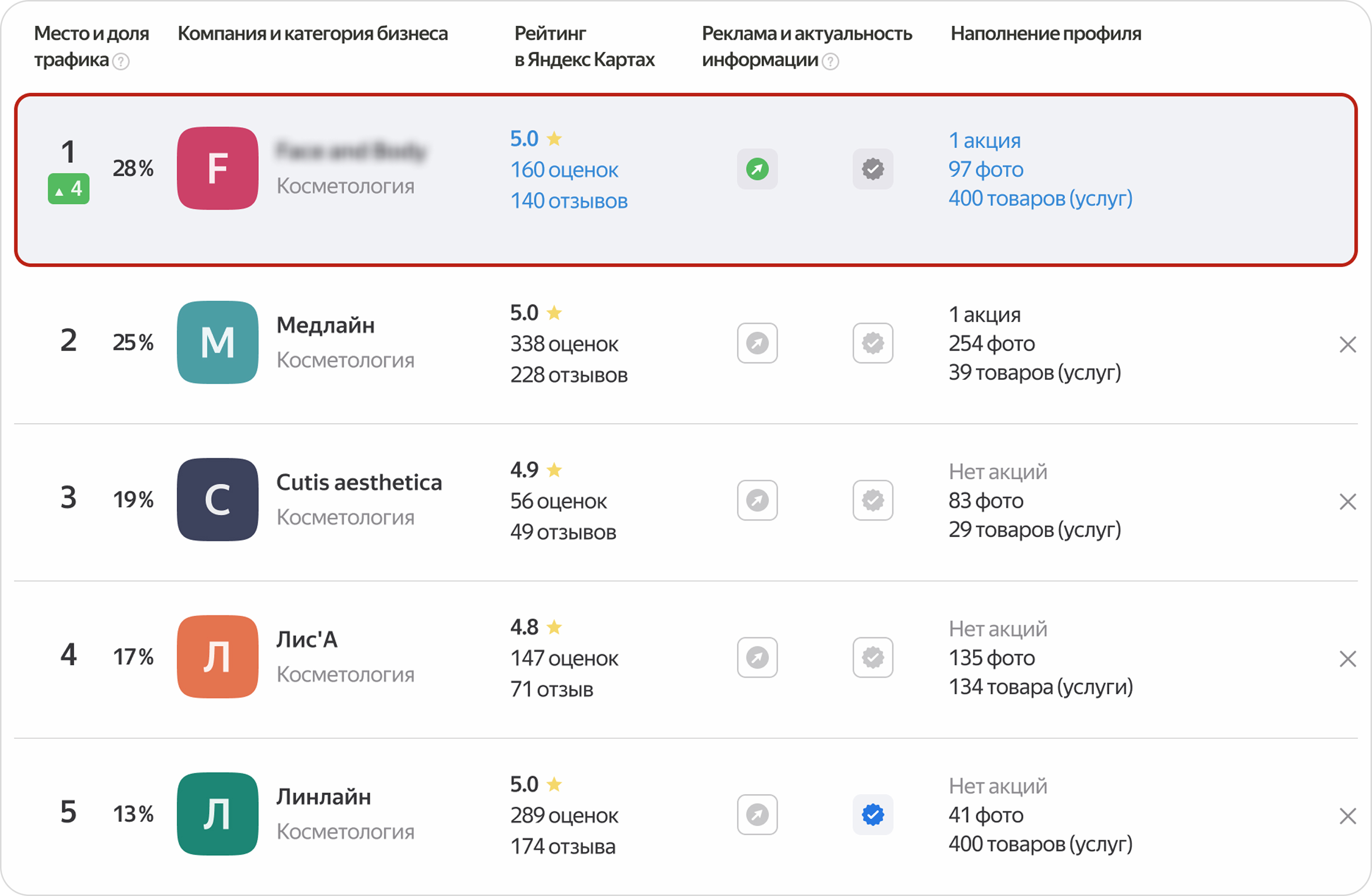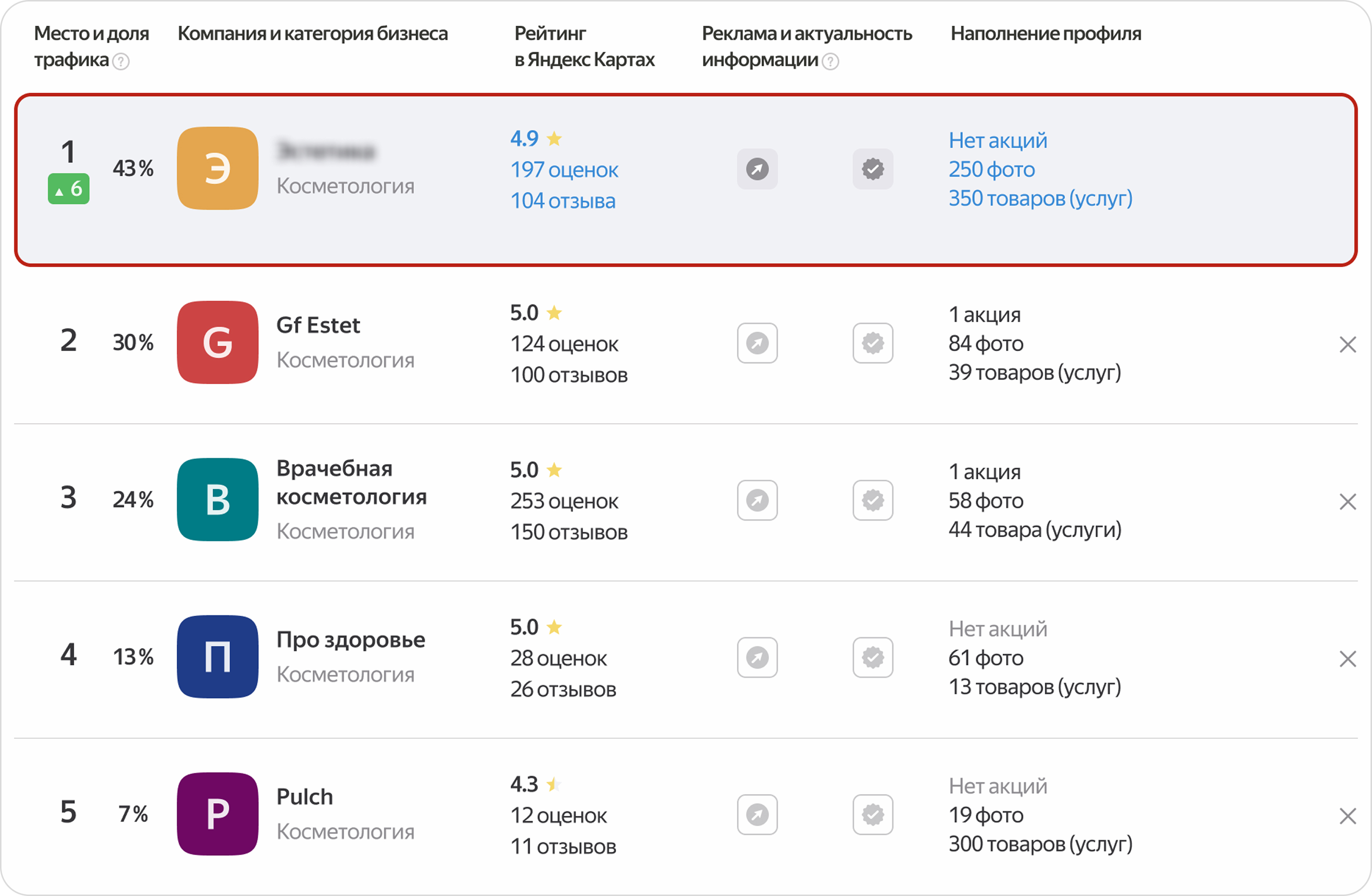 Лидерство в органике зависит от того, насколько карточка «нравится» алгоритмам Яндекса.